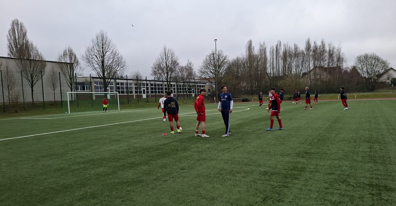 Direkt von Beginn an stellte SC Bünde uns vorne zu und machte es uns schwer unser Aufbauspiel durchzuziehen, doch in den ersten Minuten fanden wir noch gute Lösungen und trafen in der 9. Minute nach einem Steckpass von Derian Yelcin, den der von außen eingelaufene Anton Stieber verwandelte. Doch mit der Führung wurde eher der Gegner mutiger und griffiger und wir haben uns mit zunehmender Spieldauer den Schneid abkaufen lassen. Es kam in der 27. Minute zu einem folgenschweren Ballverlust im Aufbau im Zentrum, den Bünde mit einem guten Steckpass sofort in eine Chance umwandelte und der Stürmer unseren Torwart umlief und zum 1:1 traf. Schon fünf Minuten später in der 32. Minute, stand es dann 2:1 für SC Bünde nach einem direkt verwandelten Freistoß und die Köpfe unserer Mannschaft gingen weiter runter, statt sich zu wehren.