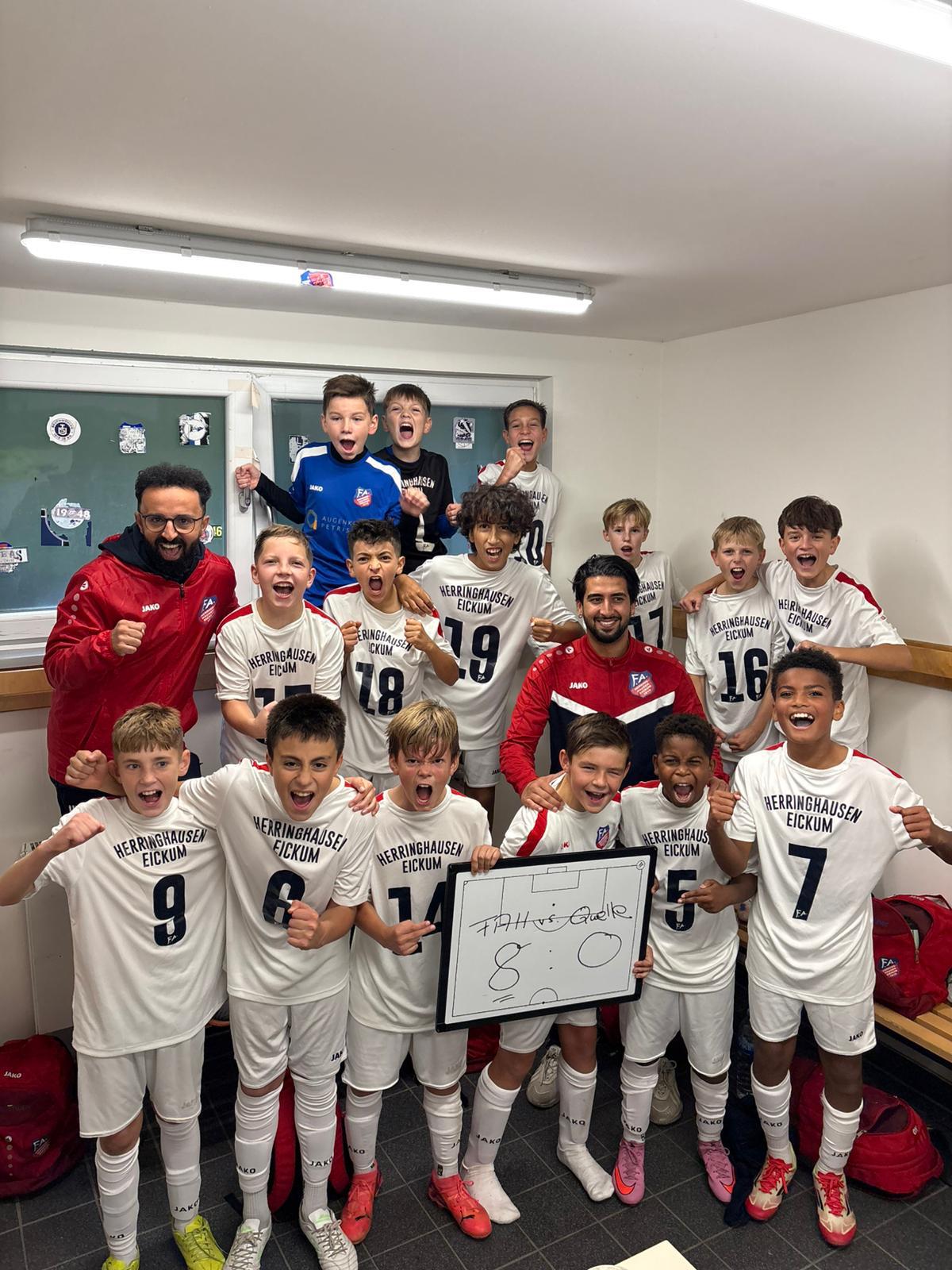 Am Ende freuten sich die Jungs und das Trainerteam Ümit Yavuz und Can Karakus über einen – auch in der Höhe – völlig verdienten 8:0-Heimsieg gegen einen überforderten Gegner aus Quelle.