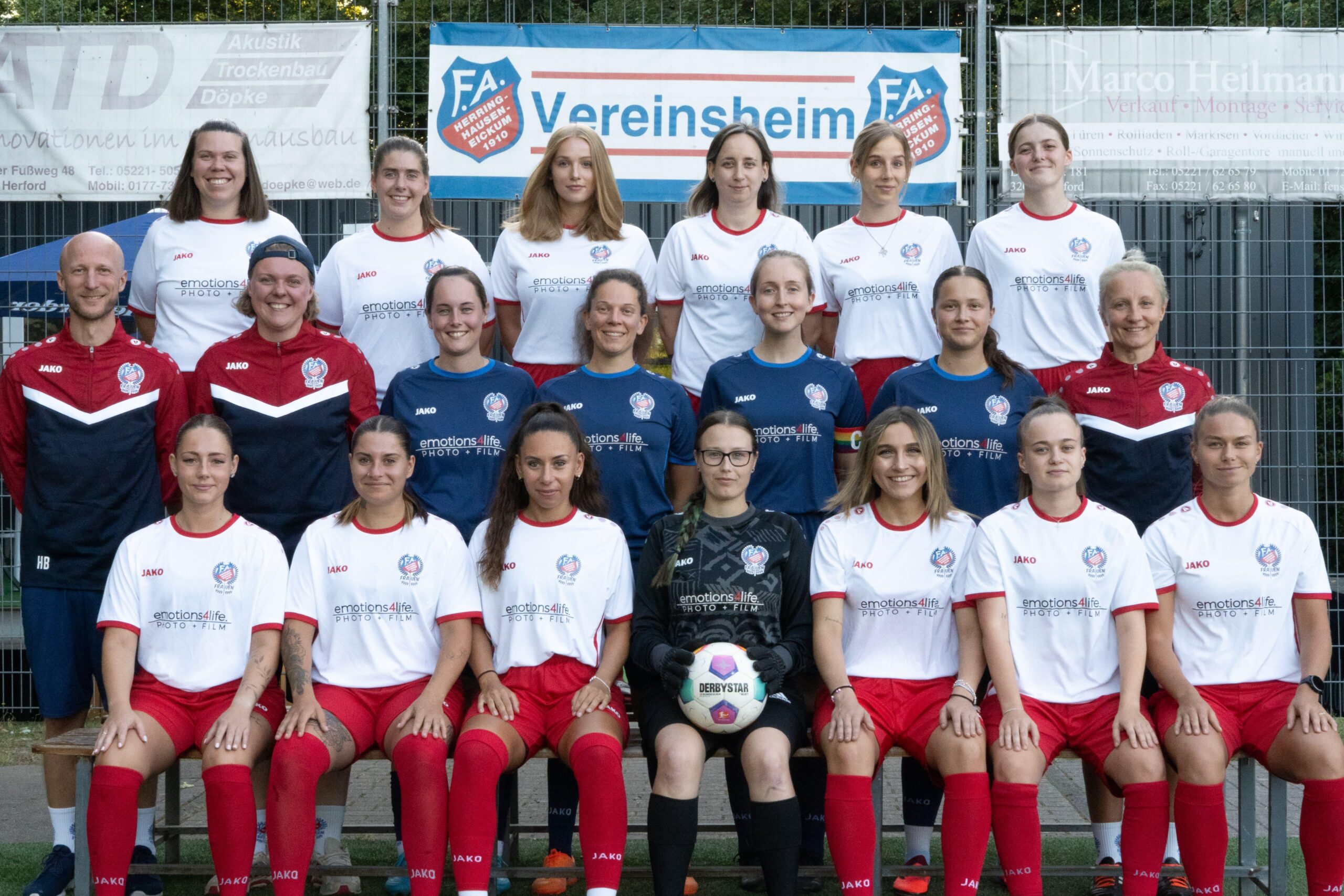 Unsere Frauenmannschaft geht mit Alina Hall (hinten R. v. l.), Kim Uhlig, Merrit Klapp, Nicole Piela, Lisa Boden, Jody Heitmeyer, Betreuer Hauke Blombach (mitte v. l.), Trainerin Lisa Frickemeier, Michelle Tack, Lätitia Winkler, Nina heisterborg, Joleena Jacke, Trainerin Monika Pronobis, Verena Klincksiek (vordere R. v. l.), Nele Schoening, Sandra Gruska, Martha Hegel (TW),Despina Mastnak, Christina Lyzin und Alexandra Schlaupitz die kommende Bezirksliga-Saison. Es fehlen Michelle Ventker, Celine Ventker, Juliane Heidbrink, Lena Bunk sowie Yvonne Seißenschmidt in die kommende Saison. Trikosponsor ist emotions4life