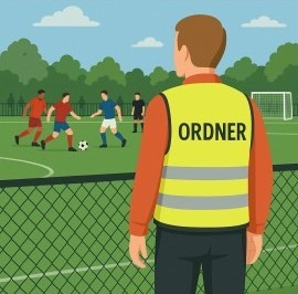 Leider kann es bei Spielen gelegentlich zu Konflikten kommen. Deshalb schreibt der Verband vor, dass bei jedem Heimspiel Ordner*innen vor Ort sein müssen. Ohne diese drohen dem Verein hohe Geldstrafen.