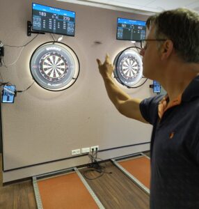 Unsere Dartabteilung wurde Anfang des Jahres 2024 ins Leben gerufen und bestand zu Beginn aus einem dutzend Vereinsmitgliedern, welche sich neben dem Platz privat zum Darten trafen. Verbunden durch den Spass an der Sache kam die überlegung das Dartspielen im Verein professioneller anzusiedeln. Und so wurde der Vorschlag an den Vorstand gerichtet, eine Mannschaft für den Spielbetrieb anzumelden. Der Ligabetrieb erforderte es, regelkonfomes Equipment anzuschaffen. Nach reiflichen Überlegungen wurden dafür im Sportlehrheim zwei Steeldartscheiben sowie die dazugehörige Ausrüstung und Software angeschafft. Der Start im Ligabetrieb gestaltete sich Anfangs positiv. Doch war es schwer für die darauffolgenden Spieltage Freitags das Team regelmäßig voll zu bekommen. Dies führte dazu das der Ligabetrieb vorerst gegen Ende des Jahres 2025 abgemeldet werden musste.